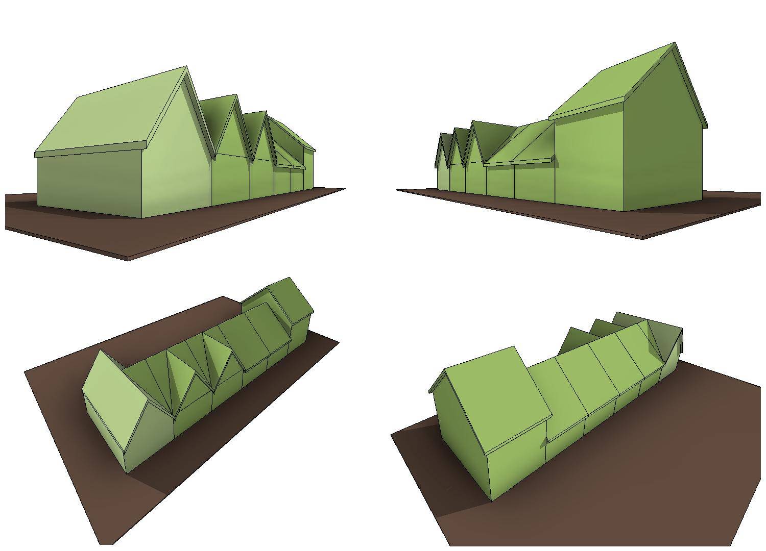 Ook hier zijn architectonisch zeer fraaie combinaties te maken, waarbij de bergruimten tegen de eindgevels worden geplaatst. Zo heeft elke woning een echte voortuin en goed uitzicht.