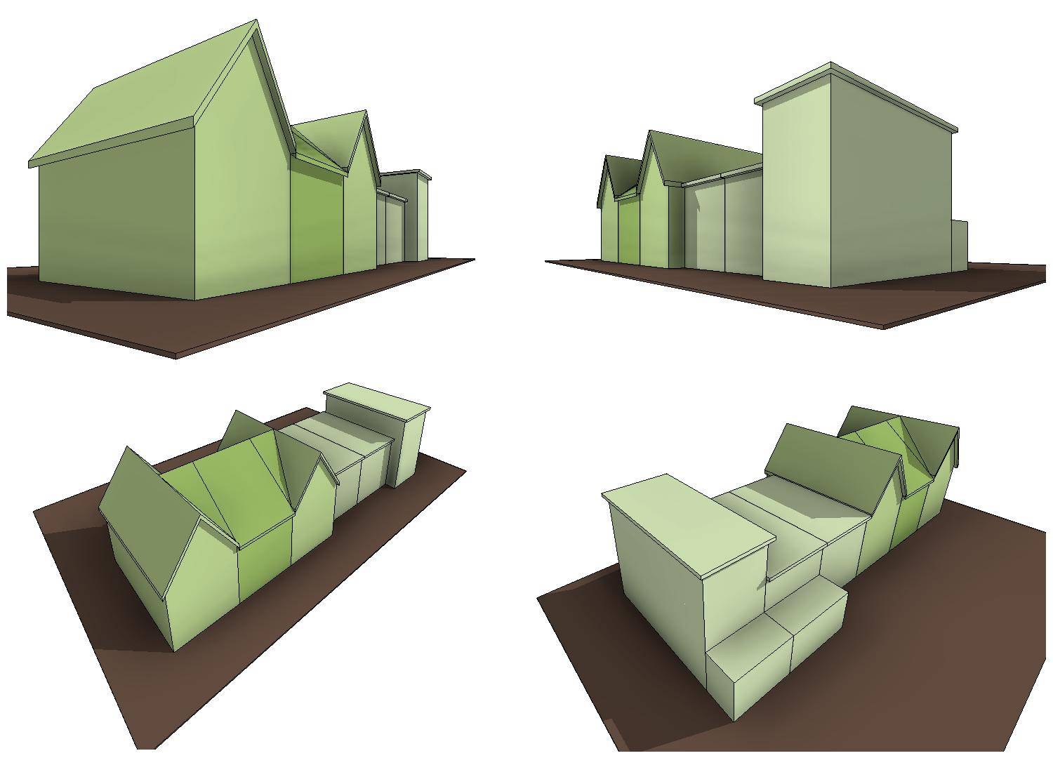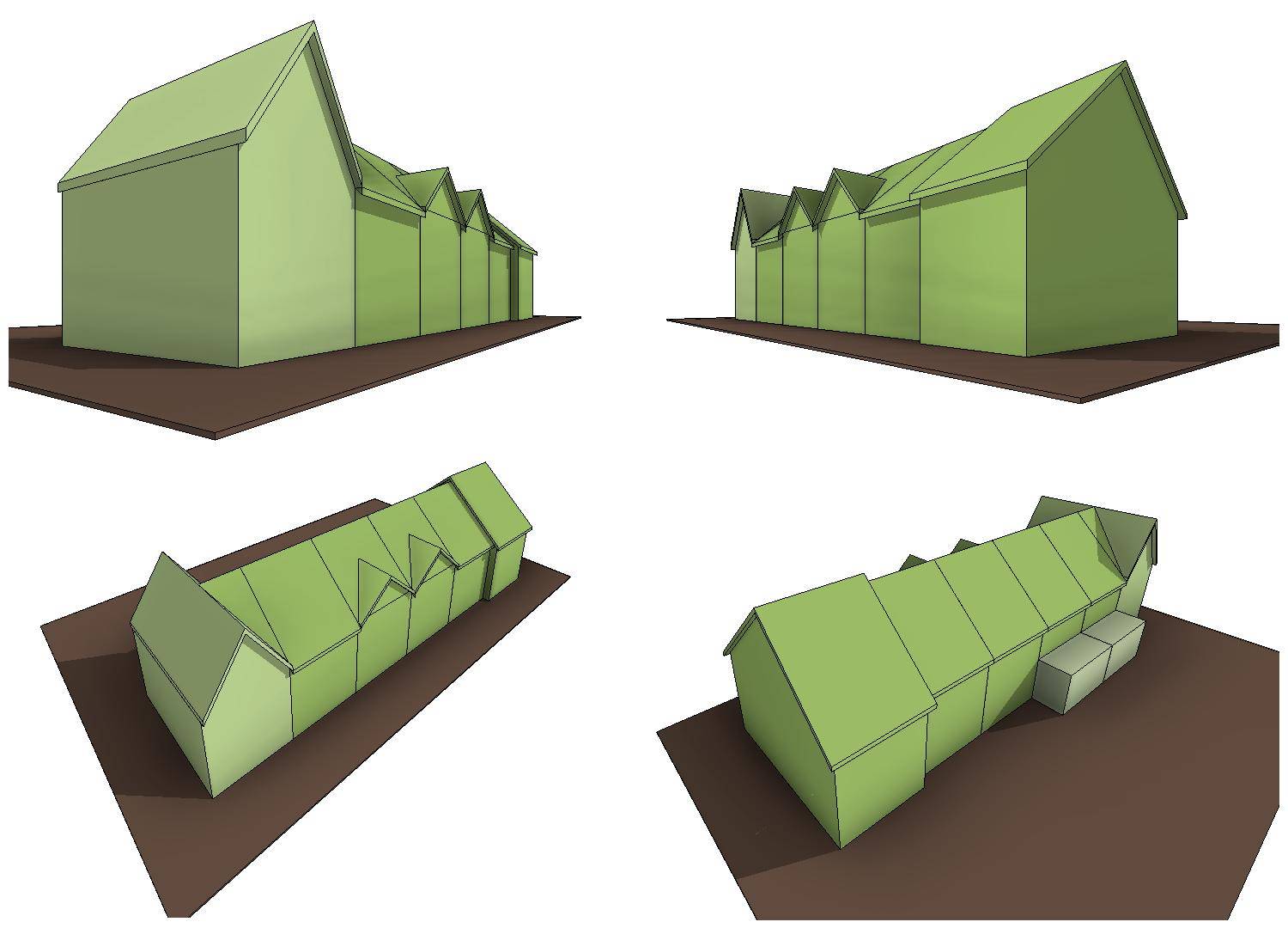 De afbeeldingen hiernaast geven een kleine indruk van wat er mogelijk is. Al deze vormen hebben hetzelfde binnenwerk voor wat betreft bouwconstructie, installaties, trappen.